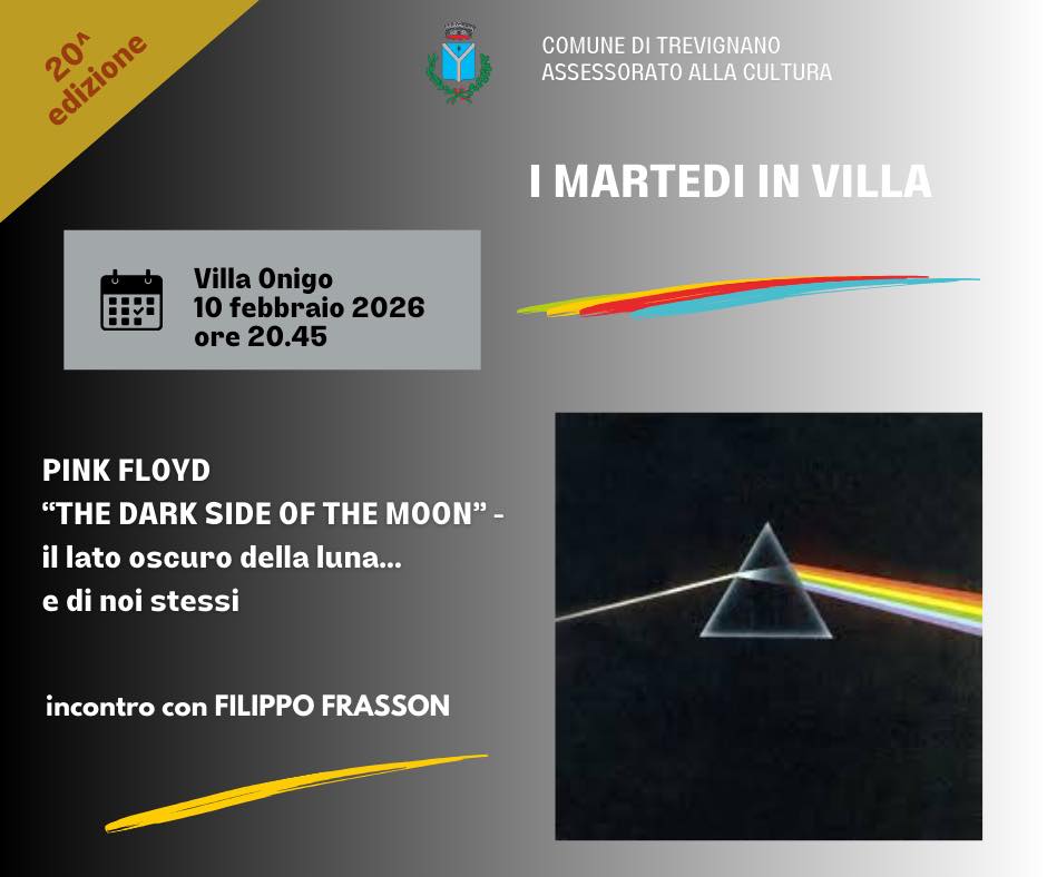 Il 10 febbraio alle 20.45 Villa Onigo ospiterà l’evento “Pink Floyd – The Dark Side Of The Moon – Il lato oscuro della luna… e di noi stessi“, un incontro con Filippo Frasson.